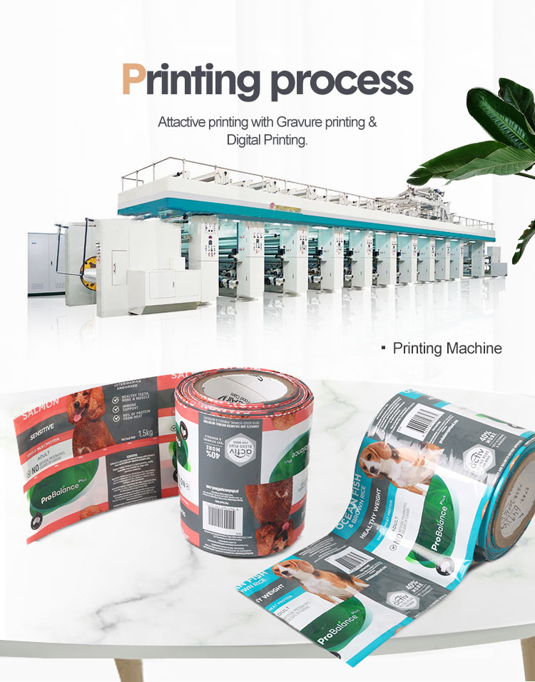 Austomizatic Custom Flexible Packaging Film Roll is also suitable for packaging chemical powders, pet food, seeds, and fertilizers. The film roll has high mechanical strength and puncture resistance, capable of withstanding puncture forces exceeding 5N, ensuring safety during transportation and storage. The moisture barrier effectively prevents moisture intrusion, keeping materials dry and stable, suitable for long-distance sea transport or high-humidity environments.