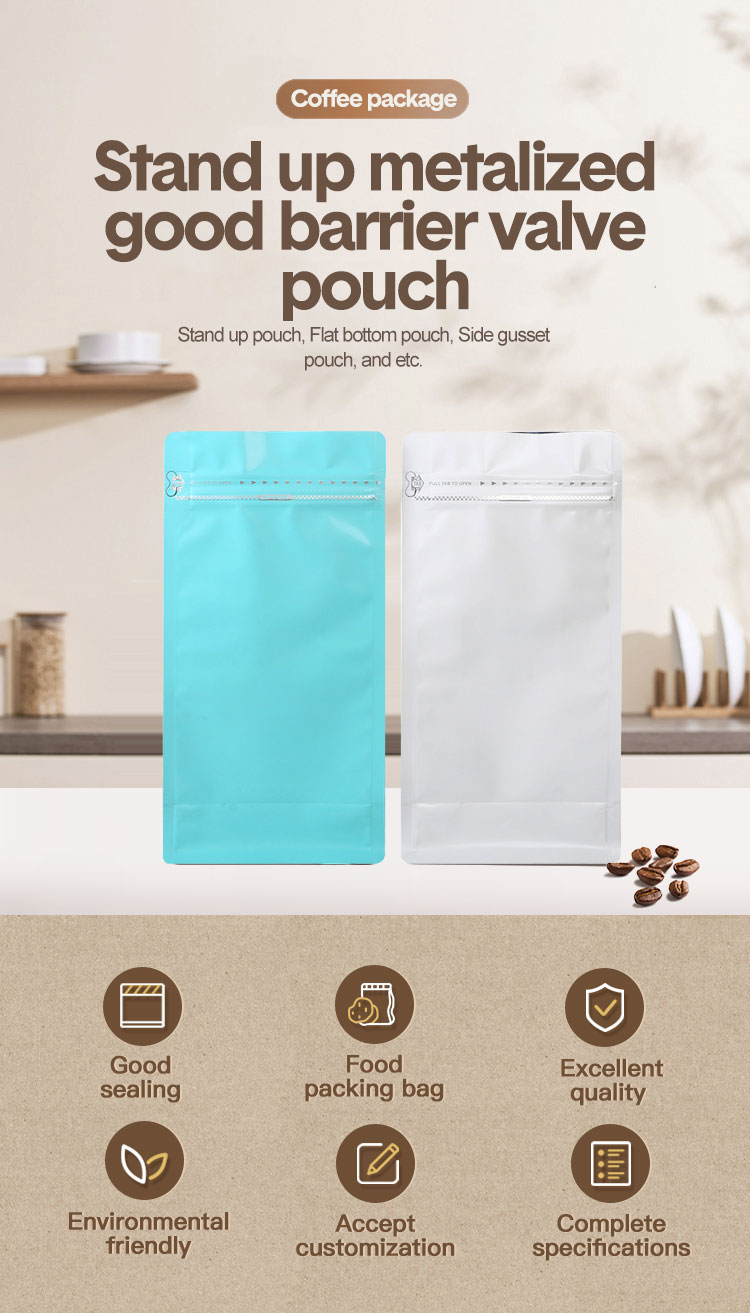 Custom Coffee Pouches are a customizable packaging solution designed for coffee beans and ground coffee products. They can be tailored to brand requirements in terms of size, structure, printing effects, and material combinations. The multi-layer composite film structure provides excellent barrier properties, ensuring the coffee remains stable during transportation and storage. These pouches typically utilize flat-bottom or stand-up pouch structures to enhance shelf display and can be combined with various sealing methods. Manufacturers can produce customized packaging in different quantities to meet the needs of roasting brands, retailers, and cross-border e-commerce sellers, providing unified planning from graphic design and gloss effects to structural selection. Custom Coffee Pouches have become a distinct packaging category in the coffee industry, suitable for brand packaging upgrades and supply chain collaborative development. Their overall design emphasizes functionality, visual appeal, and packaging efficiency, making them a widely used packaging solution in the coffee product market.