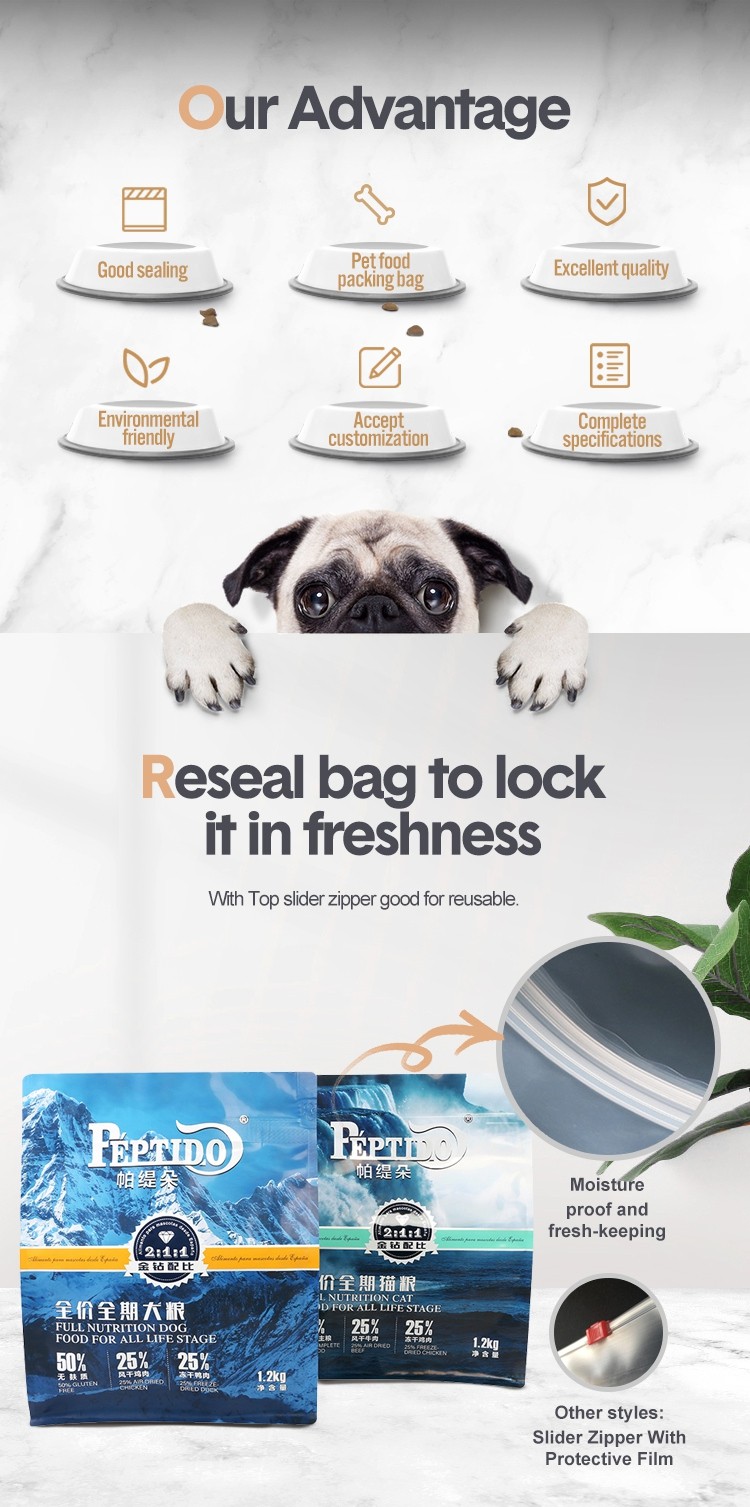 1.2kg Pet Food Aluminum Foil Flat Bottom Pouch Product Details