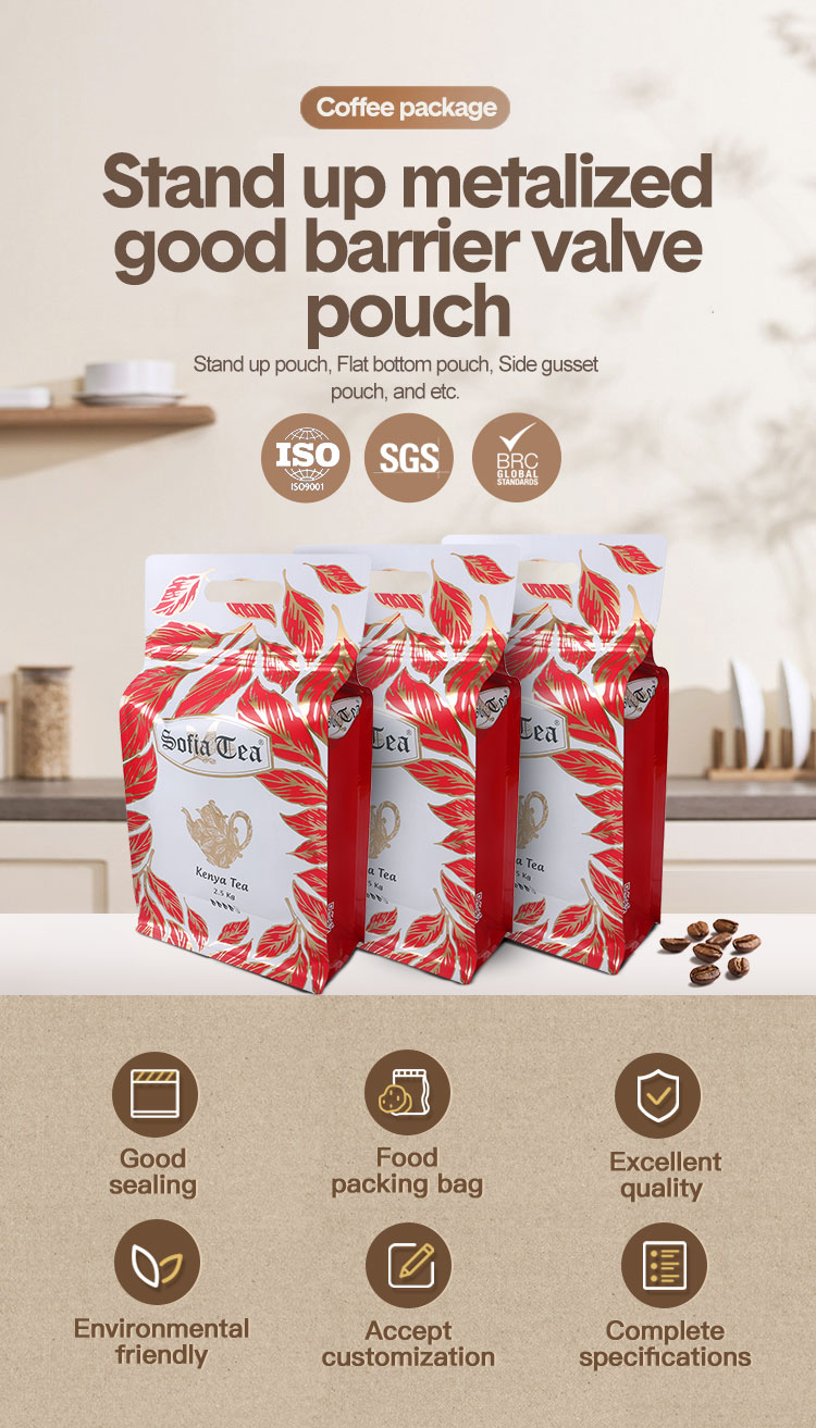 Flat Bottom Stand Up Zipper Tea Pouch Product Details
