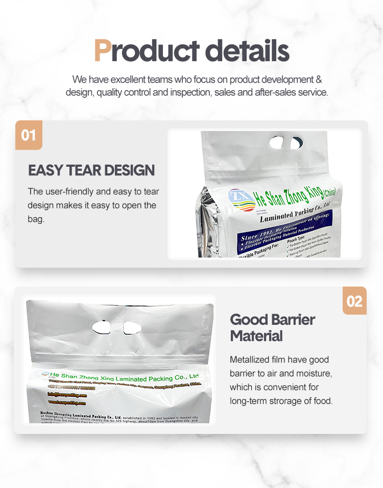 Heshan Zhongxing Laminated Packing Co., Ltd. located in Heshan, Jiangmen city of Guangdong Province. Established in 1993, we specialized in plastic flexible packaging with more than 30 year’s rich experience. The workshop takes 20000 square meter land area and meet the international standardization and strictly control the hygiene and safety.