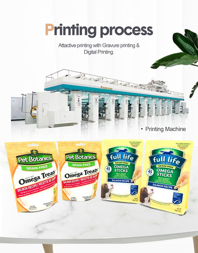 4 production lines with big capacity,which equipped with 4 printing machines, 4 automatic inspection machines, 5 lamination machines, 5 slitting machines and 20 bag making machines.