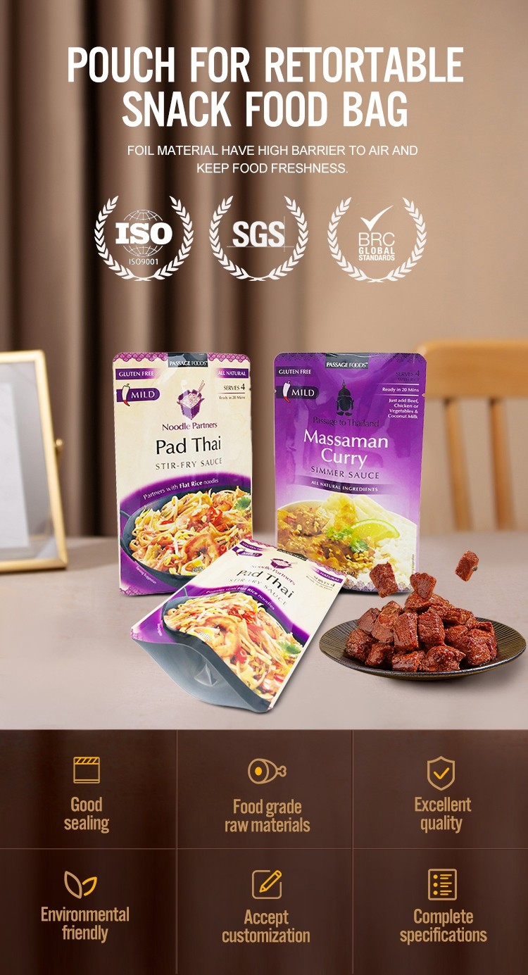 Stand Up Hot Fill Aluminum Foil Packaging Pouch Specifications