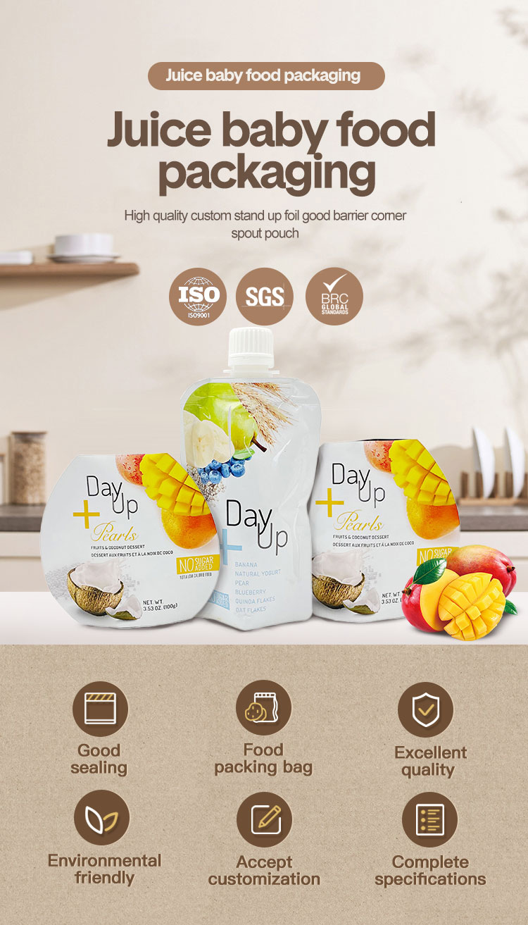Custom Stand Up Spout Pouch for Juice Baby Food Packaging Product Details
