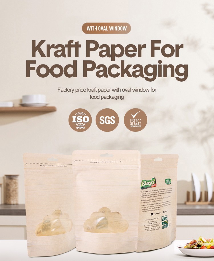 Food Packaging Kraft Paper Pouch with Window and Zipper