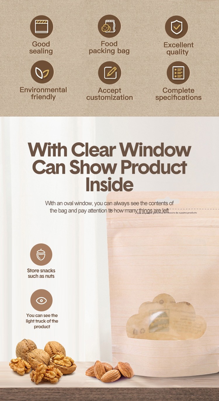 Food Packaging Kraft Paper Pouch with Window and Zipper Product Details