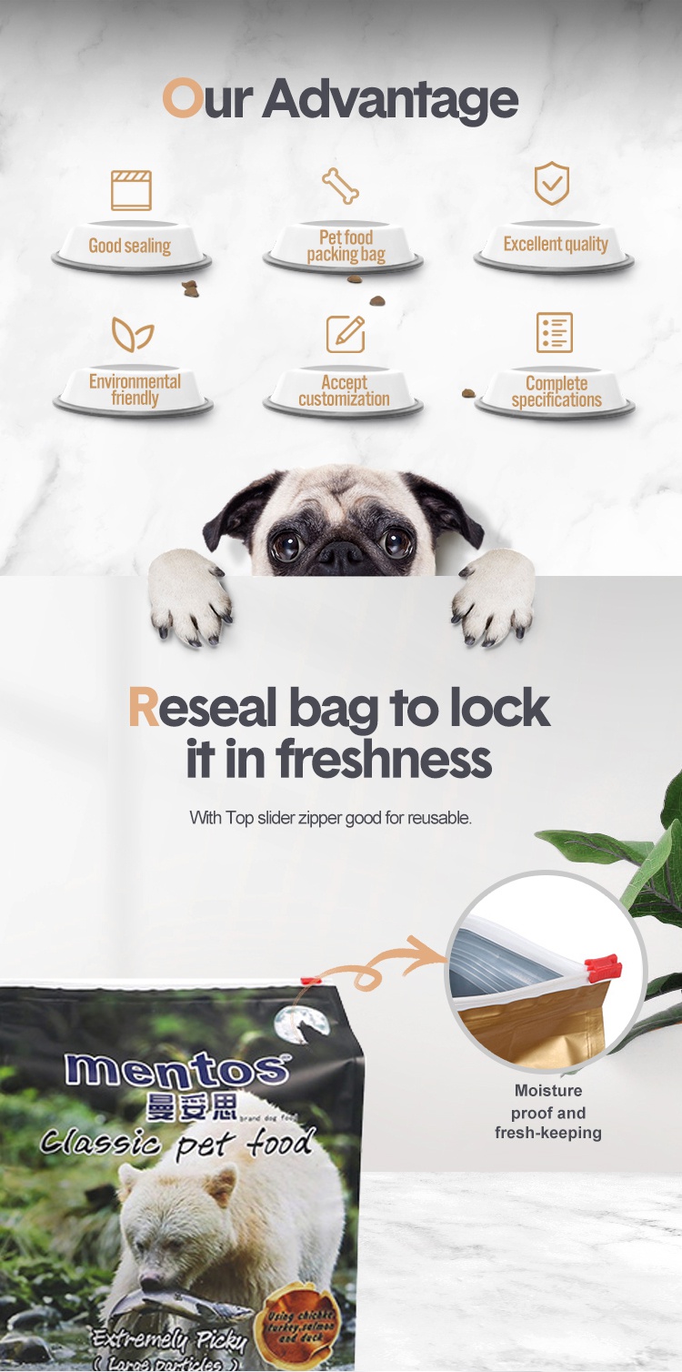 In chain store sales channels, packaging consistency is very important. Custom Dog Food Bags support long-term bulk customization. Specifications and appearance remain stable, facilitating unified channel management. The slider zipper enhances the end-user experience. The material structure meets the needs of high-turnover sales. More suitable for large-scale distribution scenarios.