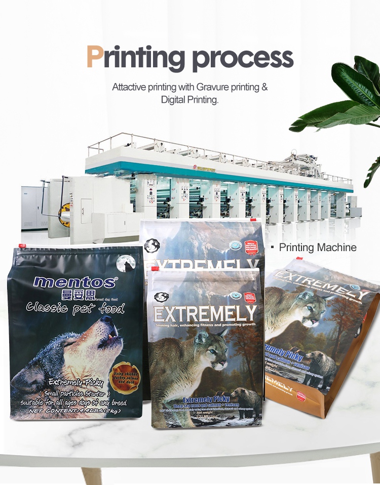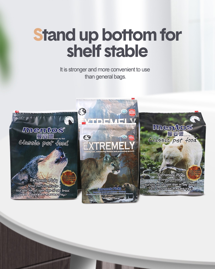 Custom dog food bags refer to flexible packaging bags specifically manufactured for the pet food industry. These bags utilize composite plastic films as the core material, employing a multi-layered structure to provide excellent protection for dog food kibble, freeze-dried foods, or functional pet foods. Compared to generic packaging, Custom Dog Food Bags emphasize a high degree of customization in size, structure, printing patterns, and opening mechanisms, precisely matching the product positioning and sales scenarios of different brands. In the pet food market, dog food requires high protection against moisture, oxidation, and odor diffusion. Custom dog food bags typically use PET, NY, PE, or aluminum foil composite structures to enhance barrier properties and packaging stability. Through customized zipper, slider closure, or easy-tear designs, the packaging maintains a good seal after repeated opening, helping to extend the freshness of the dog food. Custom Dog Food Bags are not only a means of storage and transportation but also a crucial component of brand presentation, playing a key role in shelf display, e-commerce presentation, and cross-border sales.