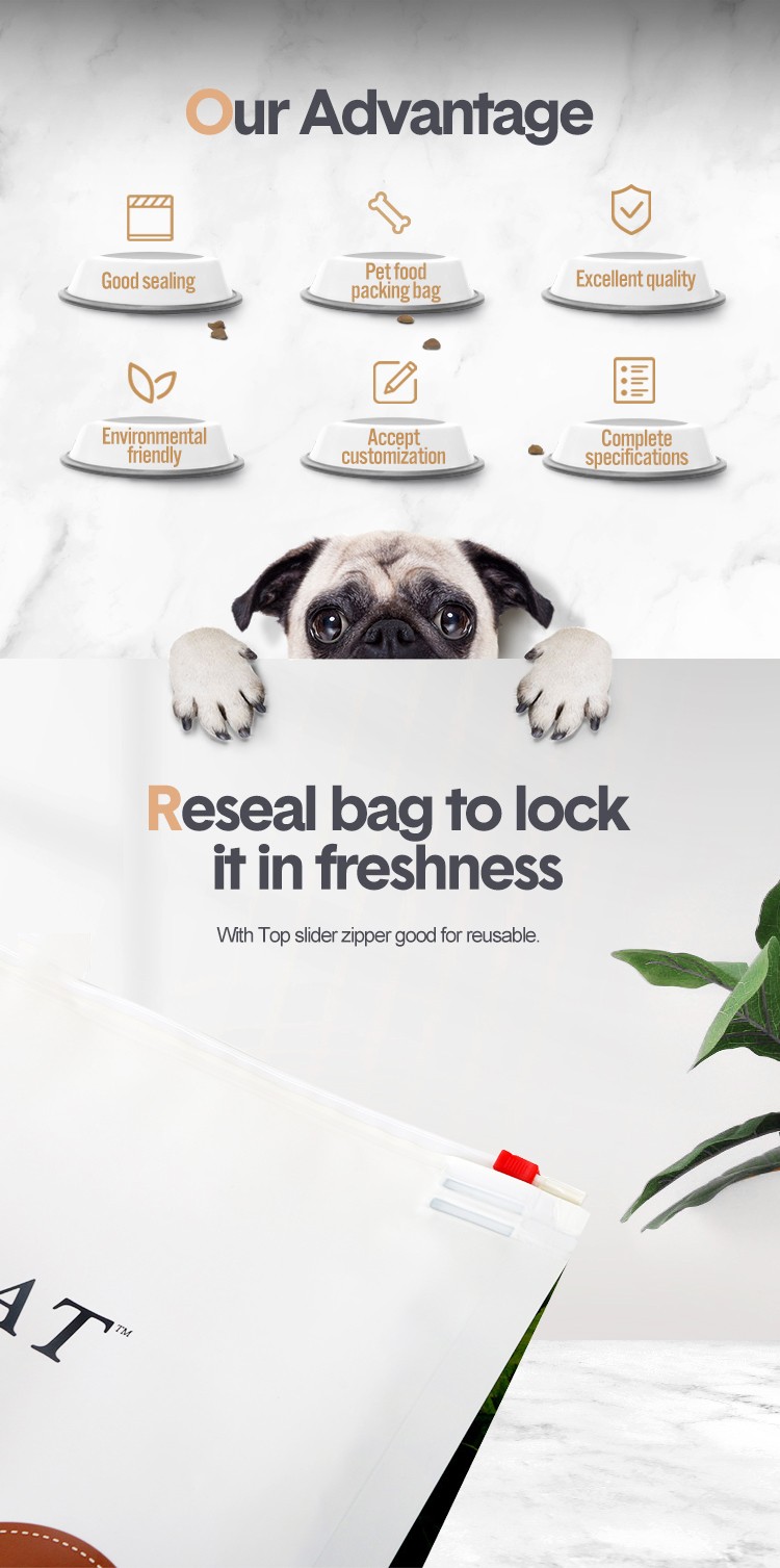 Bulky Pet Food Packaging Slider Zipper Pouch Specifications