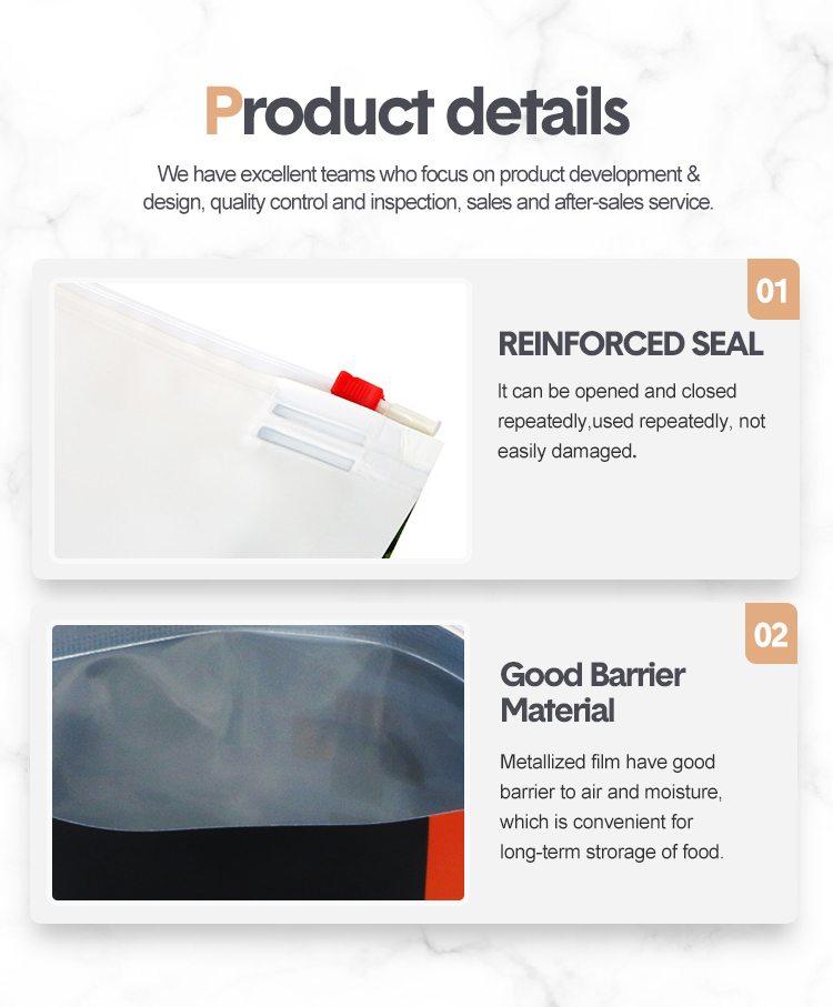 In the brand customization project, the packaging supports overall customization from bag type, material to printing pattern, and is suitable for serial product development. The combination of appearance and function of Slider Zipper Pouch helps brands form a unified and professional packaging image at the terminal.